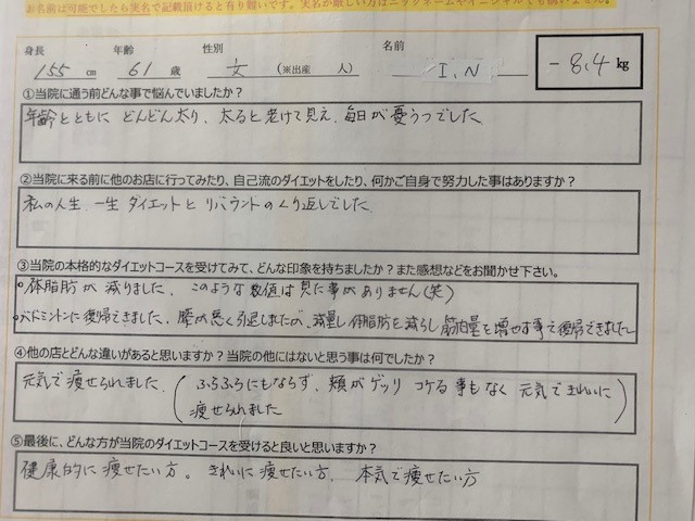 体重ー8.4㌔ 体脂肪率-11.8%