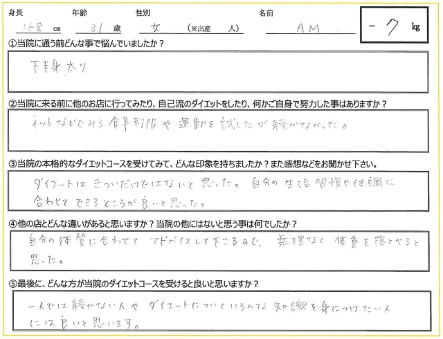 168㎝ 31歳 女性